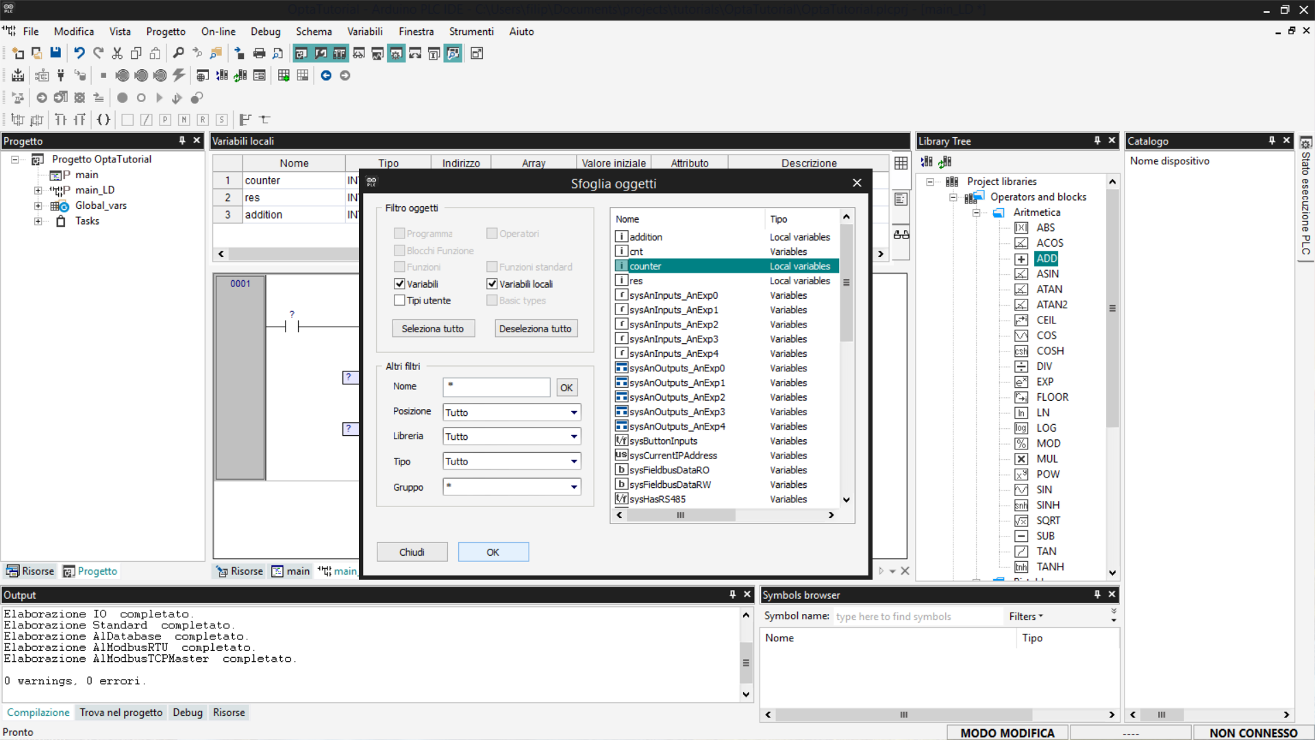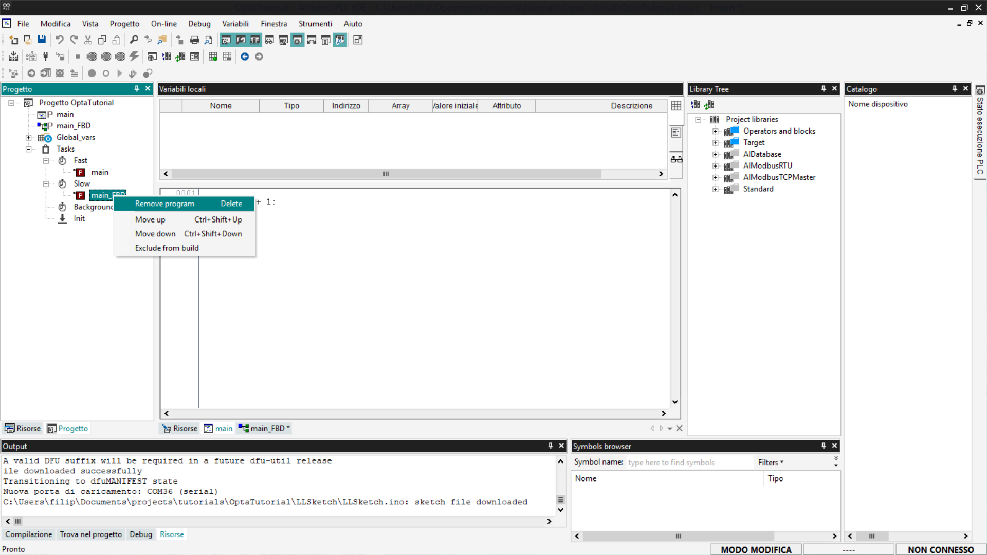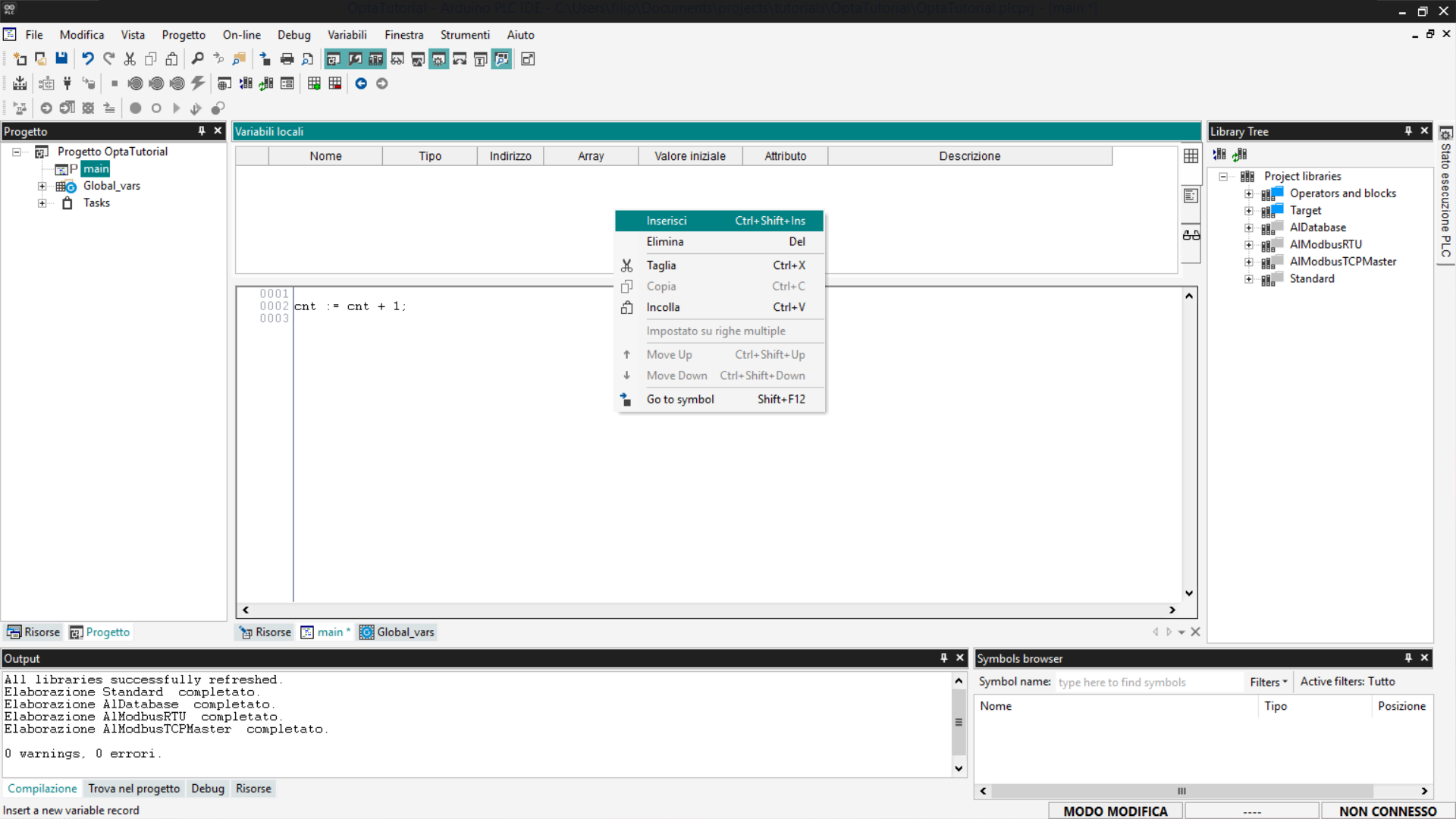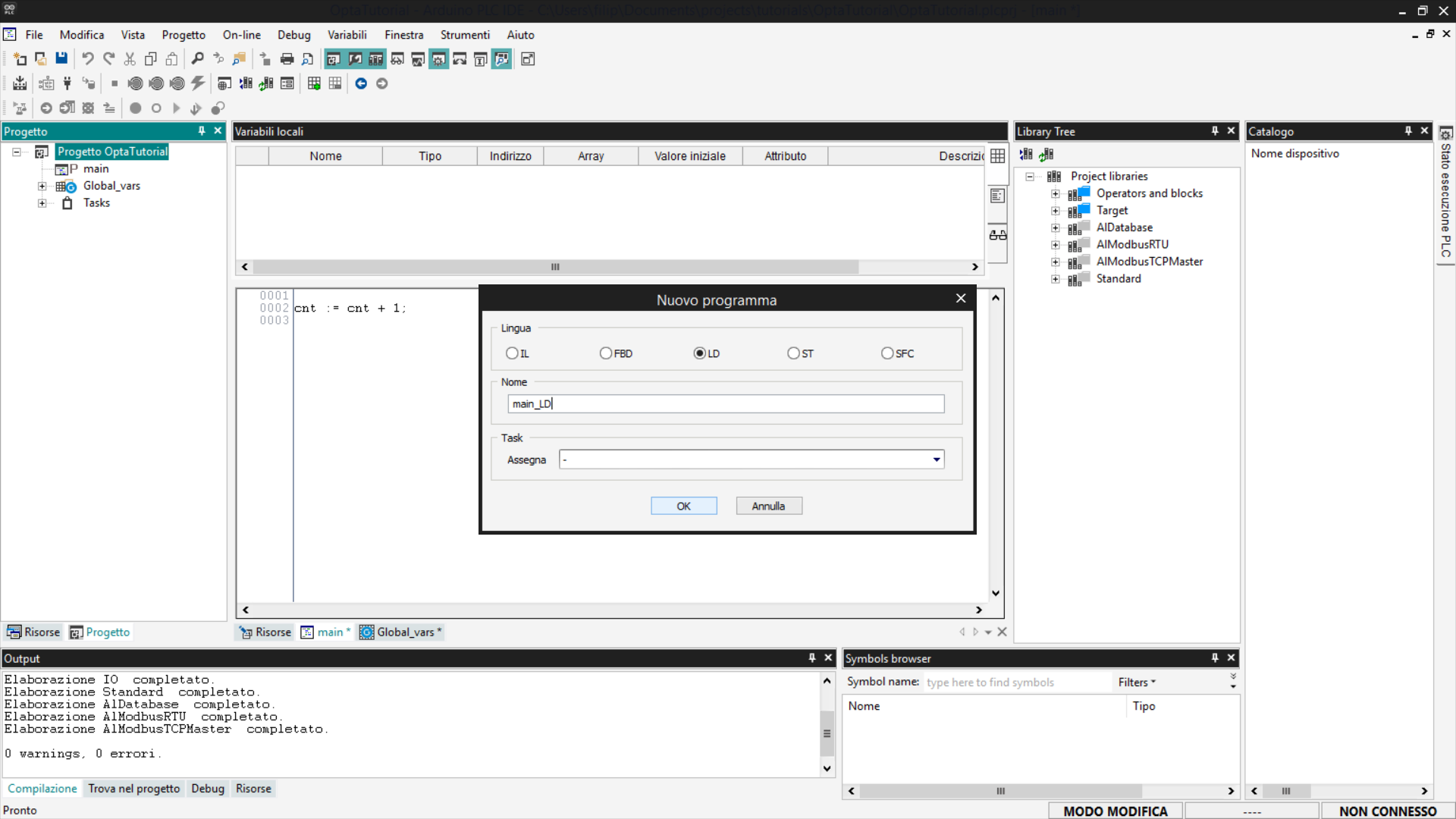 Questo tutorial fornisce una guida passo-passo all'utilizzo di Finder OPTA con Arduino PLC IDE, coprendo la gestione delle variabili e la configurazione dei task.